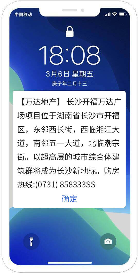 是指用戶在收到閃信群發內容后,無需打開,短信內容直接顯示在用戶手機屏幕上,用戶如果沒有點擊閱讀,則閃信內容一直有顯示,用戶必須點擊才能關閉,真正實現了高閱讀率、高到達率!提升了用戶對產品的轉化率!